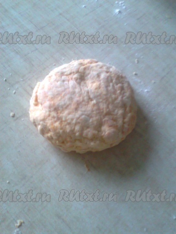 Затем стол припылить мукой и раскатать тесто в круг толщиной 3-4 миллиметра.