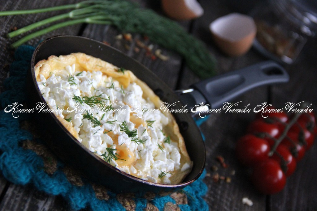 Существует немало рецептов приготовления яичницы, например, это блюдо можно дополнить овощами или колбасными изделиями. А я предлагаю приготовить очень вкусную, нежную и пышную яичницу с творогом. Это достаточно сытное блюдо станет прекрасным завтраком и для взрослых, и для детей. В дополнение можно подать нарезку из свежих овощей.
