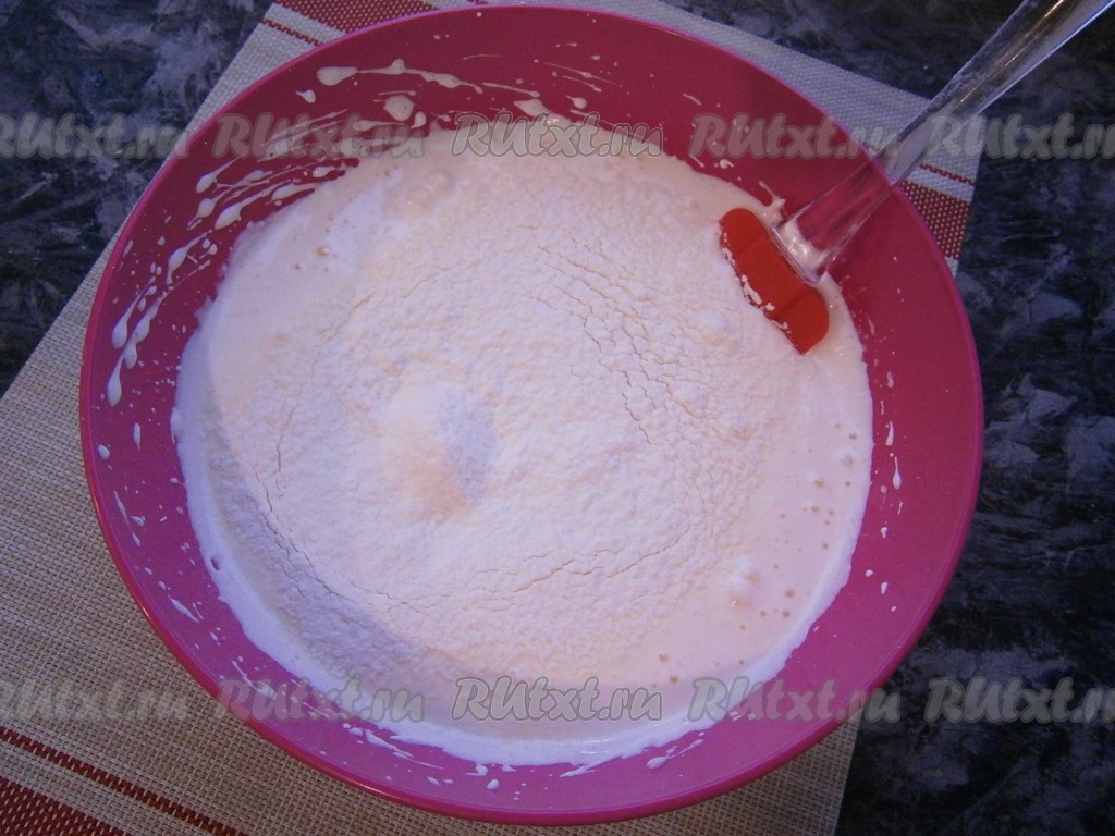 В итоге у вас должно получиться очень воздушное, нежное, однородное тесто, по консистенции похожее на крем (или сметану).