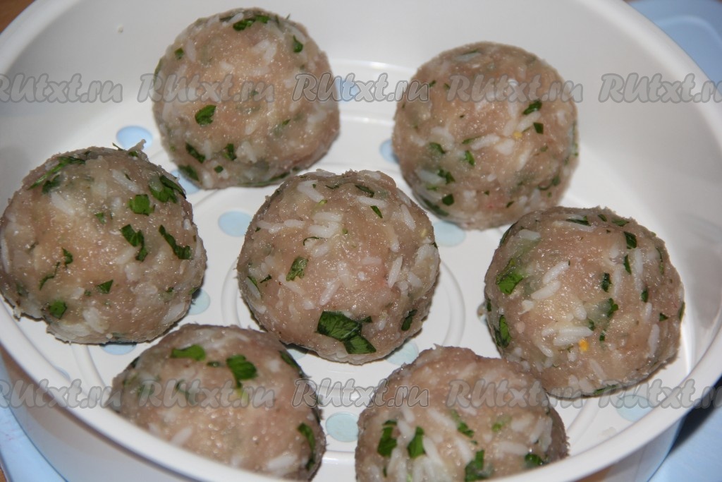 Сформировать из фарша круглые тефтели. У меня получилось 7 тефтелей, примерно, по 82 грамма каждая.
