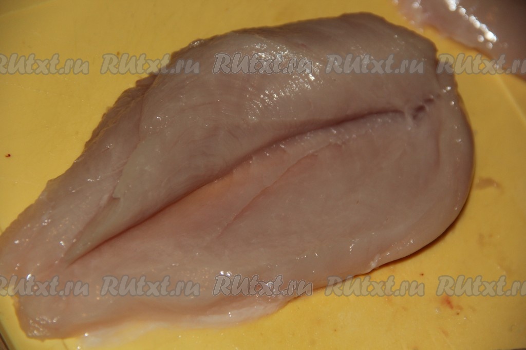 Каждое куриное филе разрезать, не дорезая до конца (как на фото), чтобы получился "кармашек".