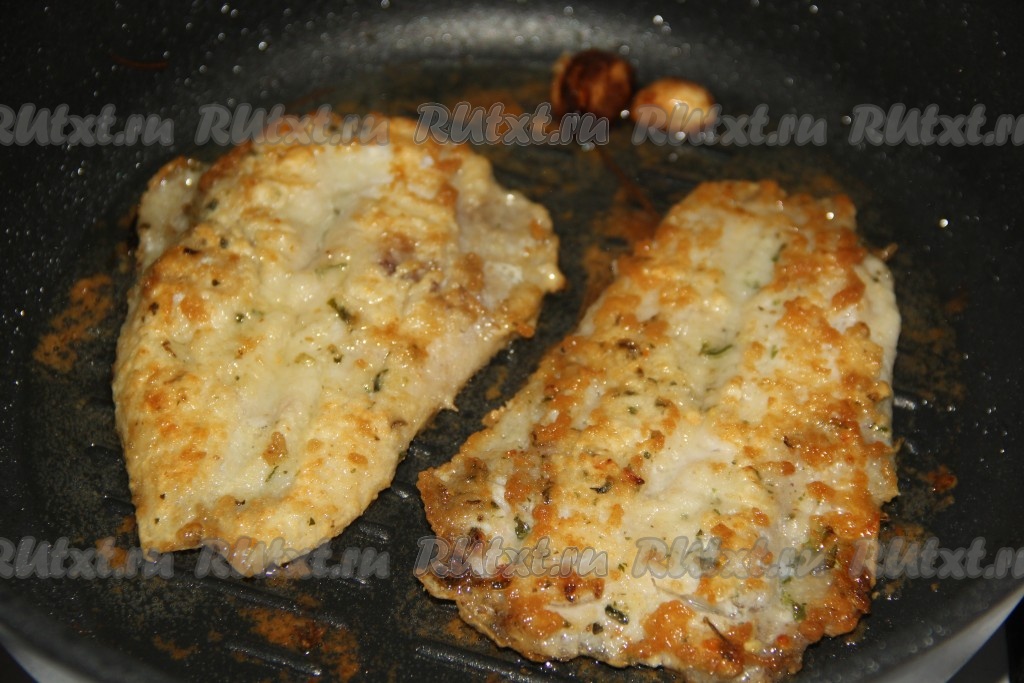 Жарить минтая до золотистой корочки с двух сторон на среднем огне.