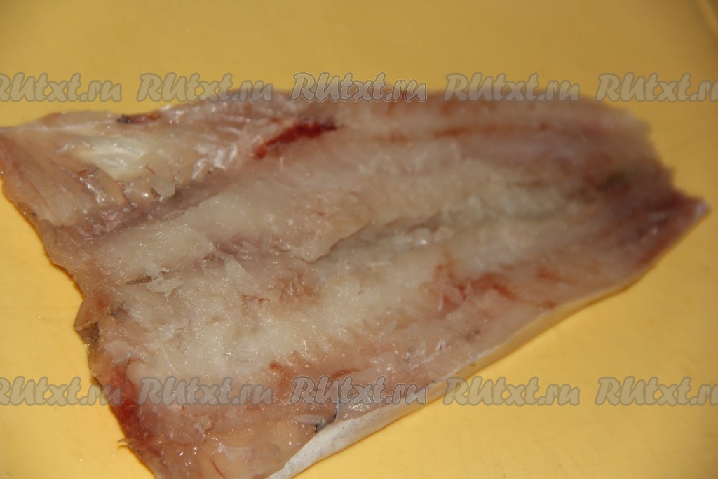 Удалить основную кость. У меня получились вот такое филе. Рыбка была некрупная, филе отлично помещается на сковороду, поэтому я в дальнейшем жарила его целиком. Если минтай крупный, тогда филе можно разрезать на несколько частей.