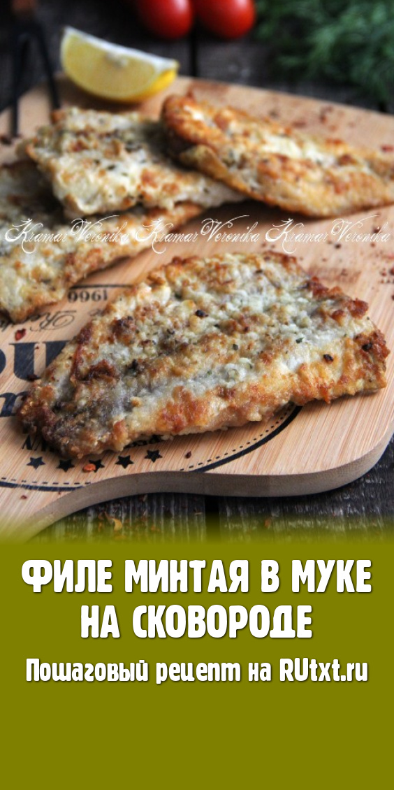 Подать в горячем виде с любым гарниром. Филе минтая, запанированное в муке, готовится на сковороде за считанные минуты, а получается сочным, аппетитным и очень вкусным.