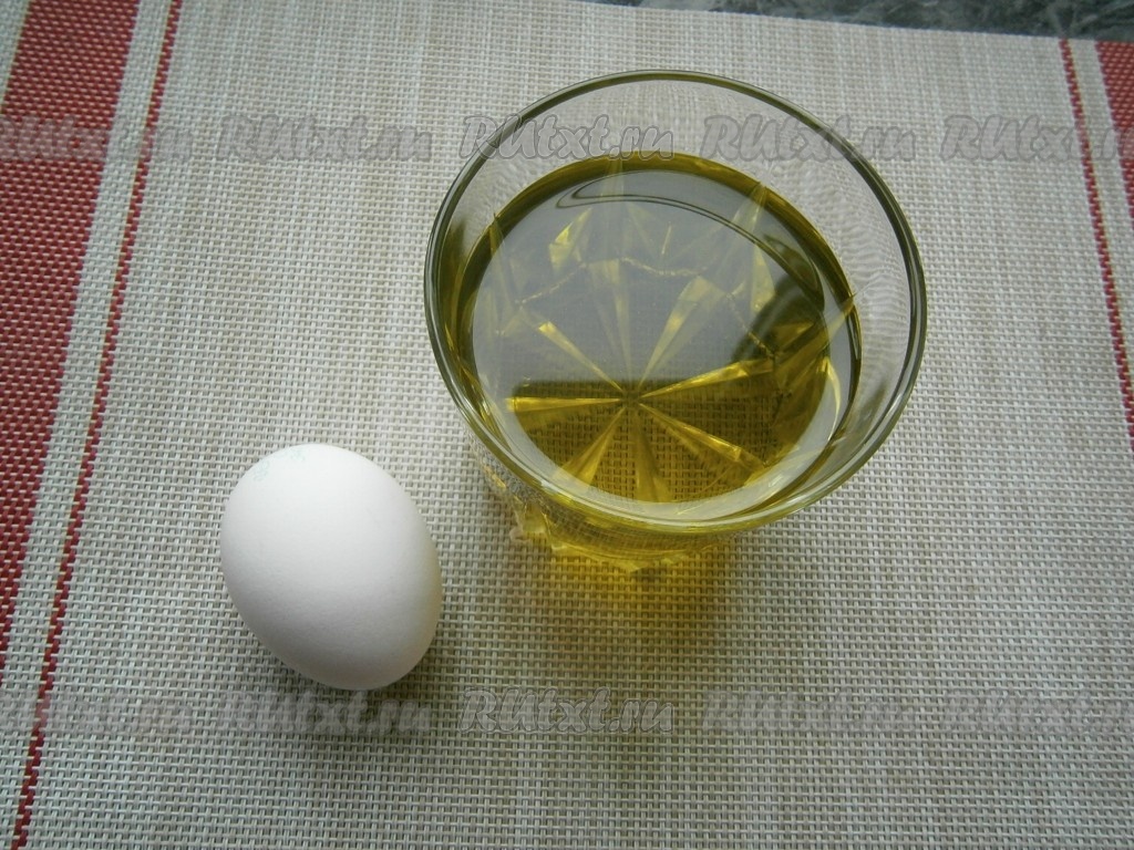 Отмерить оливковое масло, подготовить куриное яйцо.