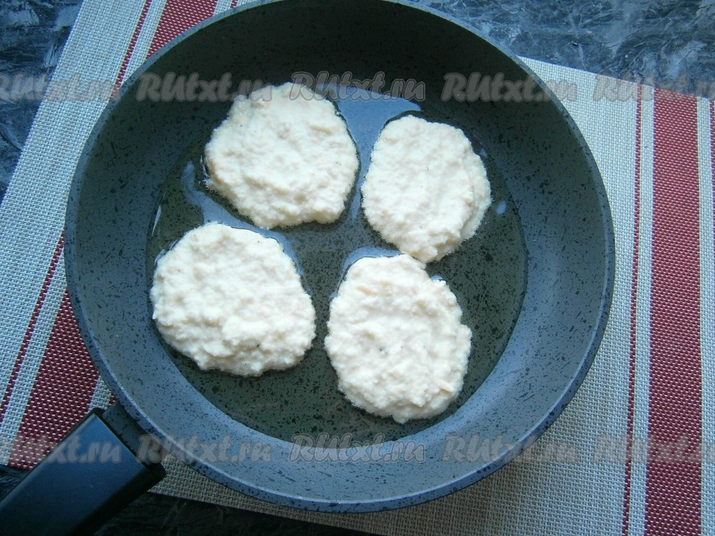 Сковороду разогреть с растительным маслом, выкладывать капустное тесто ложкой в виде оладий.