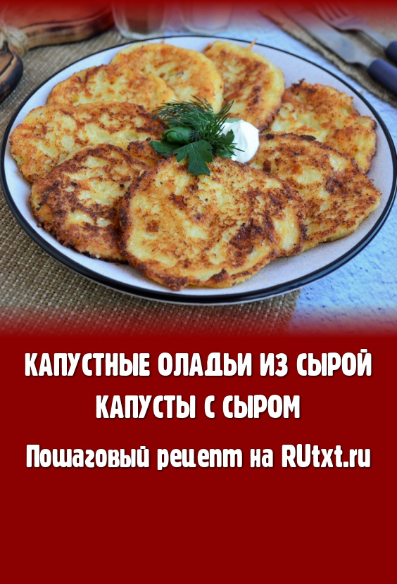 Очень вкусные, нежные капустные оладьи, приготовленные из сырой капусты с сыром, подавать в горячем виде со сметаной или любимым соусом.