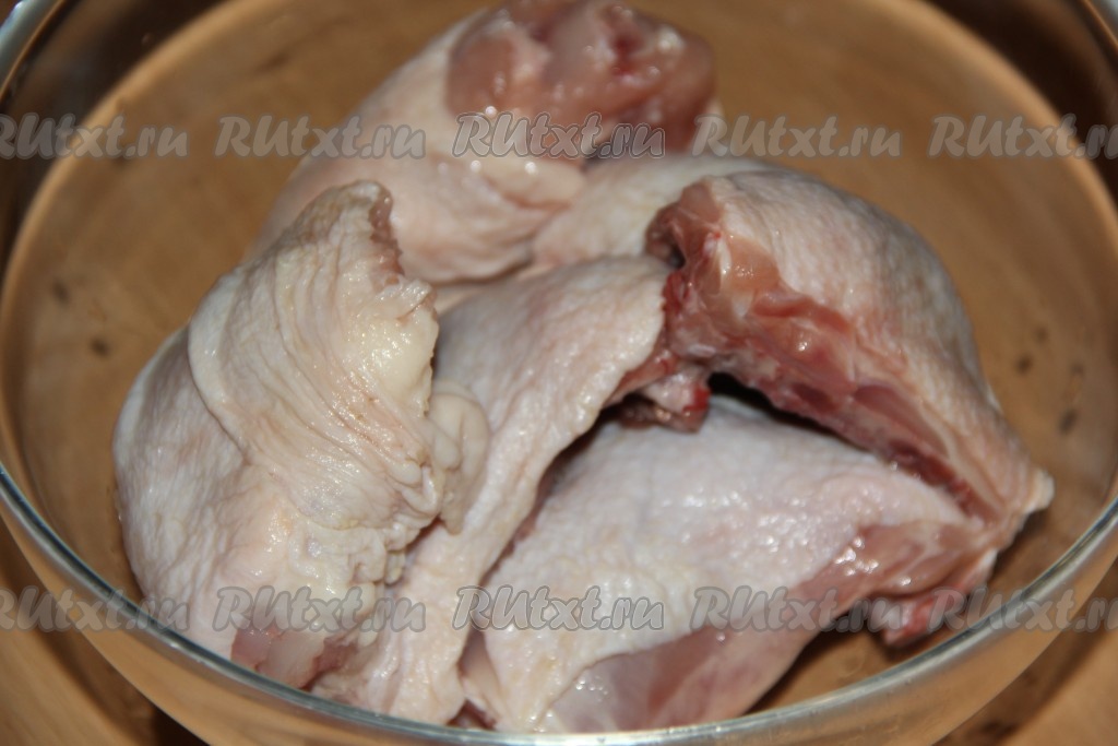 Промыть куриные бёдра водой, а затем хорошо обсушить бумажным полотенцем.