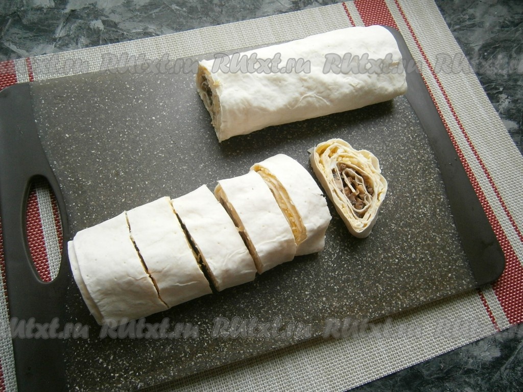 И далее полностью свернуть лаваш в рулет.