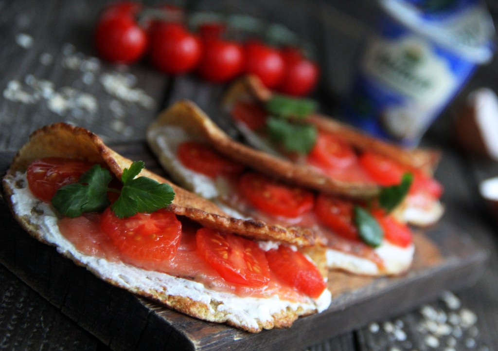 Вкусные и сытные овсяноблины, приготовленные с начинкой из сыра и красной рыбы, подать к столу.