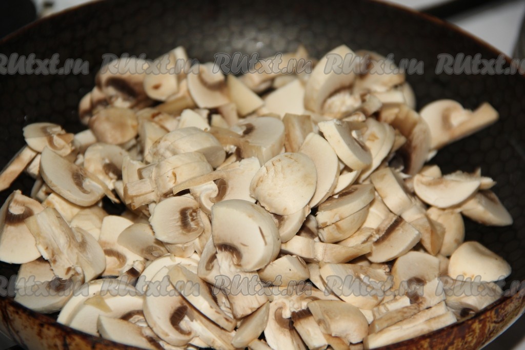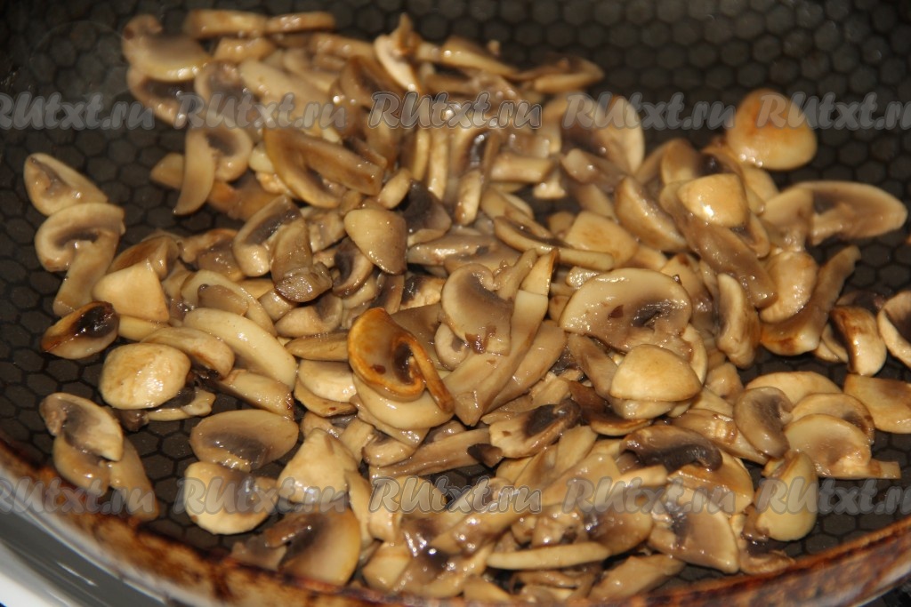 Шампиньоны обжаривать в течение 10-15 минут, помешивая, на среднем огне, а затем остудить.