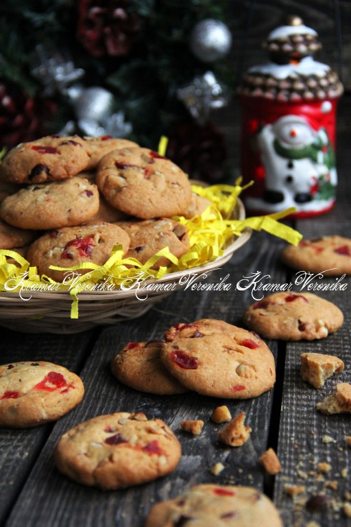 Домашняя выпечка всегда делает любое чаепитие особенно уютным. В этот раз предлагаю приготовить печенье с вяленой клюквой и орехами. Рецепт предельно простой, а выпечка получается очень вкусной, красивой, рассыпчатой и ароматной. Я испекла это печенье к Рождеству. Очень удобно, что эта выпечка может храниться достаточно долго, поэтому приготовить её можно заранее, а затем подать к праздничному чаепитию. Всем советую испечь печенье по этому рецепту!