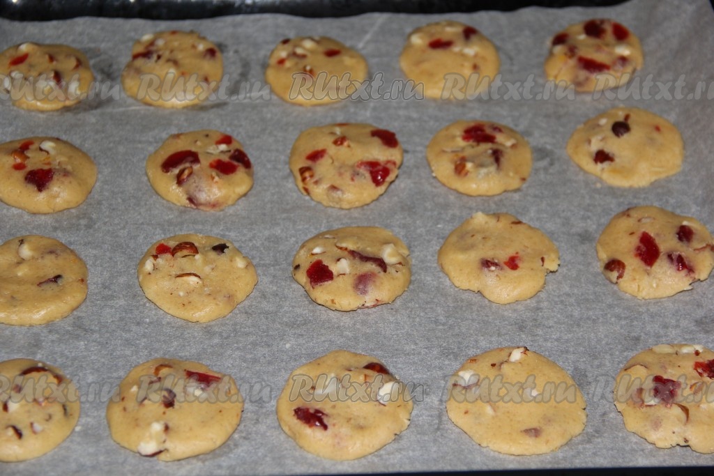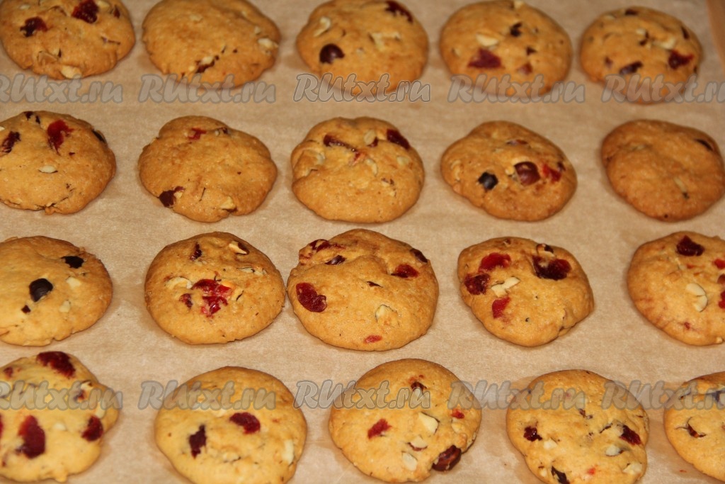 Выпекать печенье с вяленой клюквой и орехами минут 12-15.