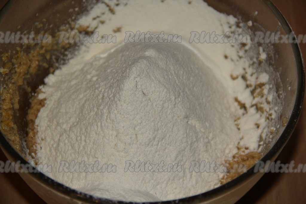 Добавить разрыхлитель. Перемешать тесто вначале столовой ложкой.