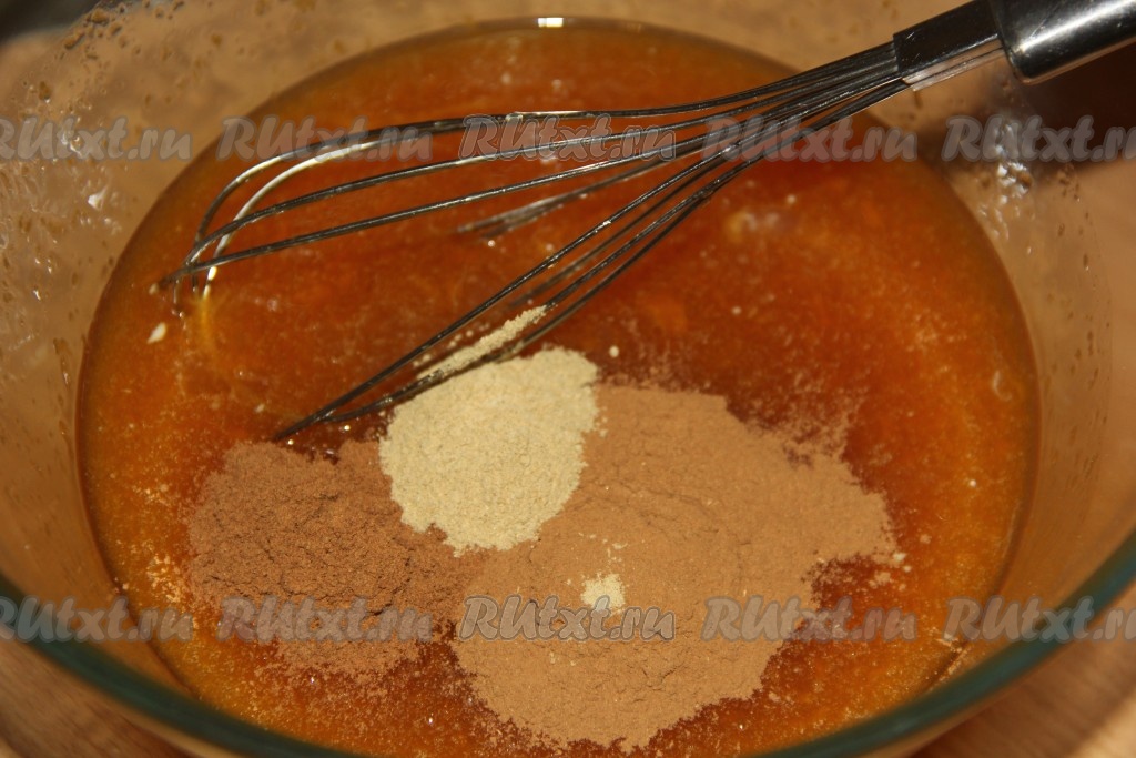 Всыпать корицу, мускатный орех и имбирь, перемешать получившуюся массу со специями.