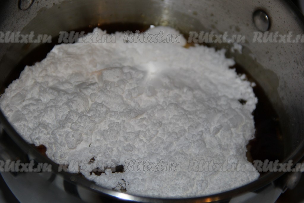 Тщательно перемешать получившуюся массу, чтобы сахарная пудра полностью растворилась, и снять с огня.
