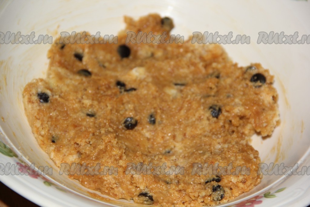 Перемешать массу ложкой, она получится слегка липкой.