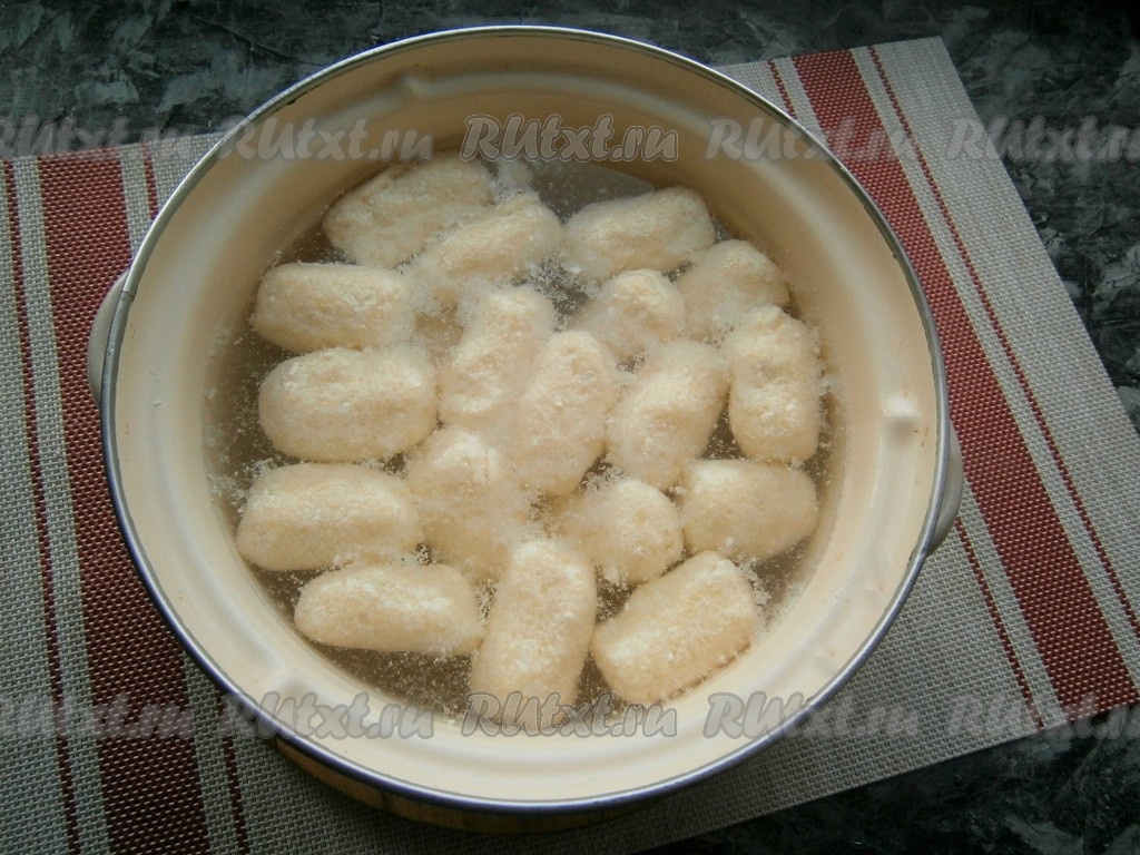 Воду в кастрюле вскипятить, поместить в неё вареники и варить до всплытия и закипания воды (3-4 минуты). Если творожная масса получилась жидковатой и вареники невозможно лепить руками, с помощью двух ложек опускайте понемногу тесто в кипящую воду и варите такое же время - до всплытия. Вареники, сформированные с помощью ложек, не развалятся, вкус и нежность будут такими же, просто у них будет хаотичная форма.