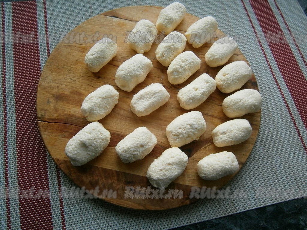 У меня масса получилась достаточно густой, но может такое быть (знаю на своём опыте), что после добавления в творог остальных ингредиентов, масса становится жидковатой - страшного ничего нет. Далее я расскажу, как поступить в этом случае. Из густой творожной массы сформировать небольшие ленивые вареники в виде шариков или бочонков.