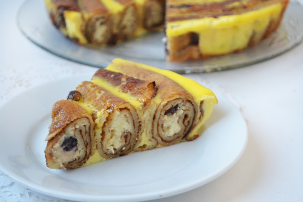 На этой неделе повсюду огромное разнообразие блинов: с начинками и без. Мне понравилась идея блинного пирога и я воплотила ее в своей интерпретации. Я предлагаю приготовить сладкий блинный пирог с творожной начинкой в нежной сметанной заливке. Это очень вкусно.