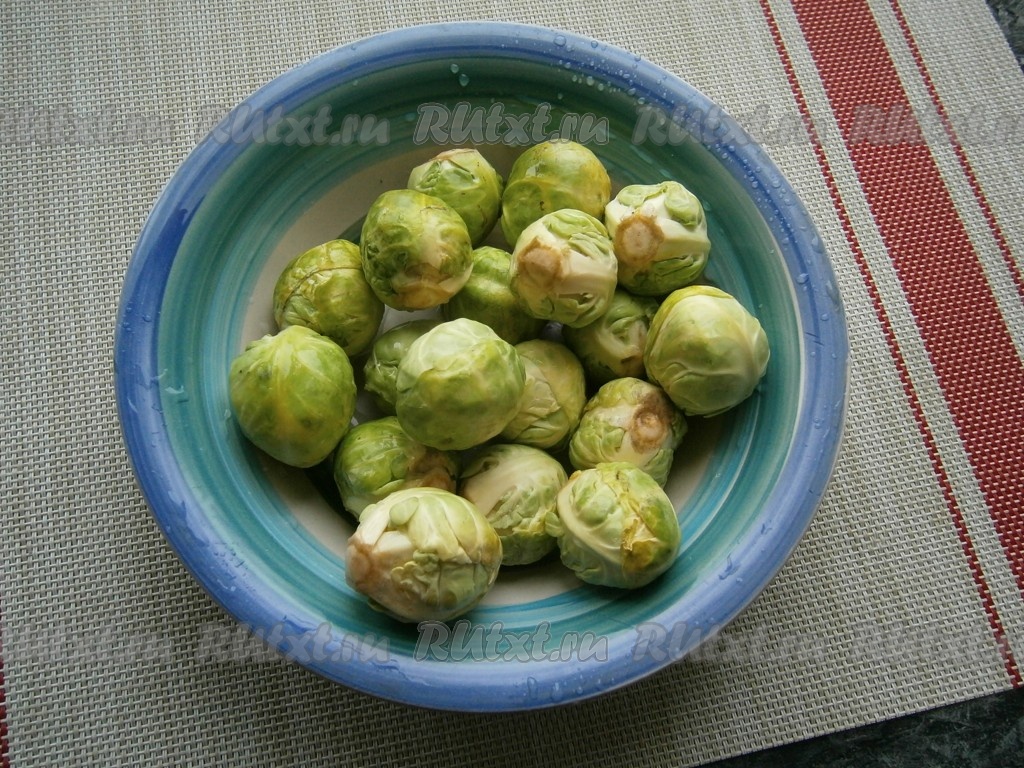 Брюссельскую капусту вымыть, если есть кочерыжка - отрезать.