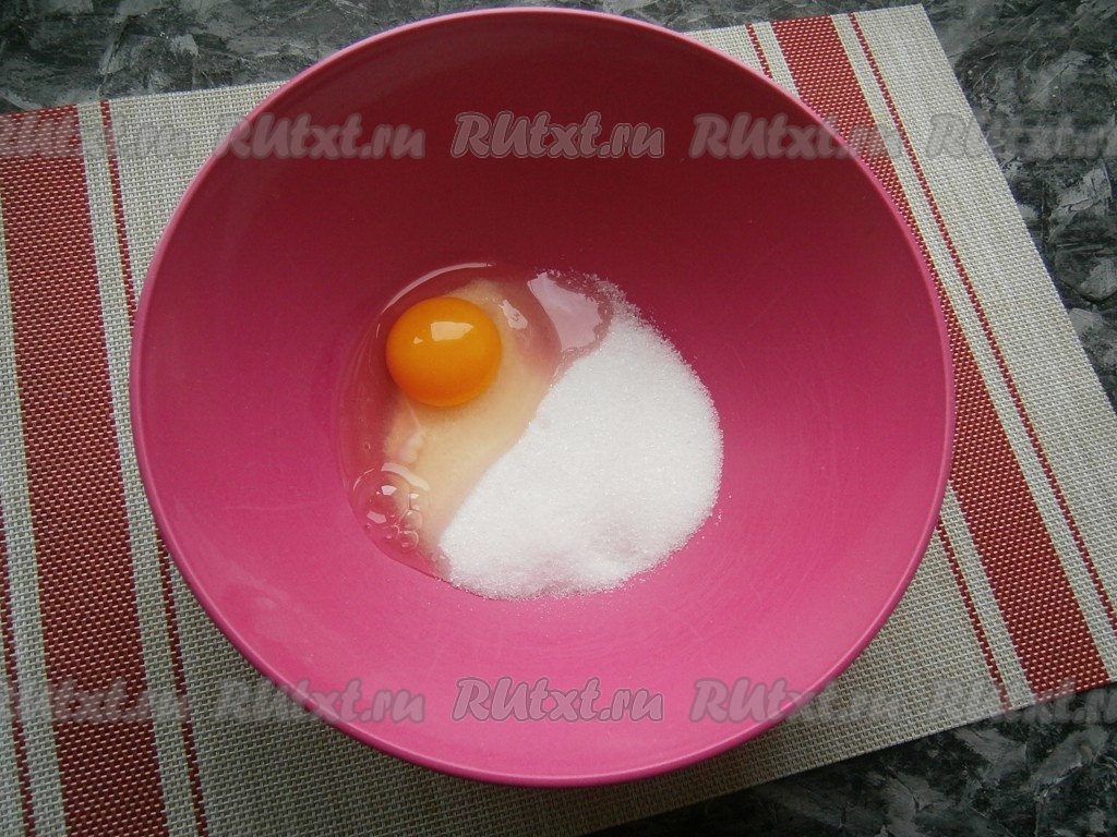 В миску всыпать сахар, соль, ванильный сахар, добавить сырое яйцо.