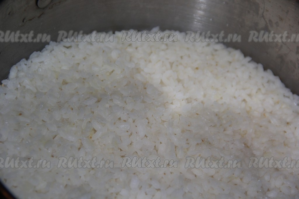 Очень хорошо промыть 100 грамм риса проточной водой. Выложить промытый рис в кастрюлю, влить 200 мл холодной воды и поставить на огонь. Как только вода закипит, убавить огонь до минимума и, накрыв кастрюлю крышкой, варить рис минут 20 (до готовности, вода должна полностью испариться). Кастрюлю с готовым рисом снять с огня, добавить 1 столовую ложку рисового уксуса и перемешать. Остудить рис, кастрюлю накрыв полотенцем.