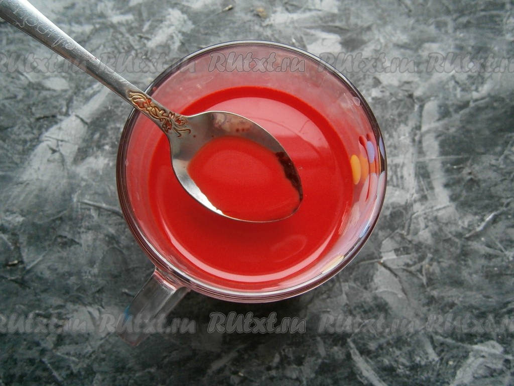 Молоко, смешанное с красителем, влить в яично-масляную смесь и тщательно перемешать или взбить миксером.