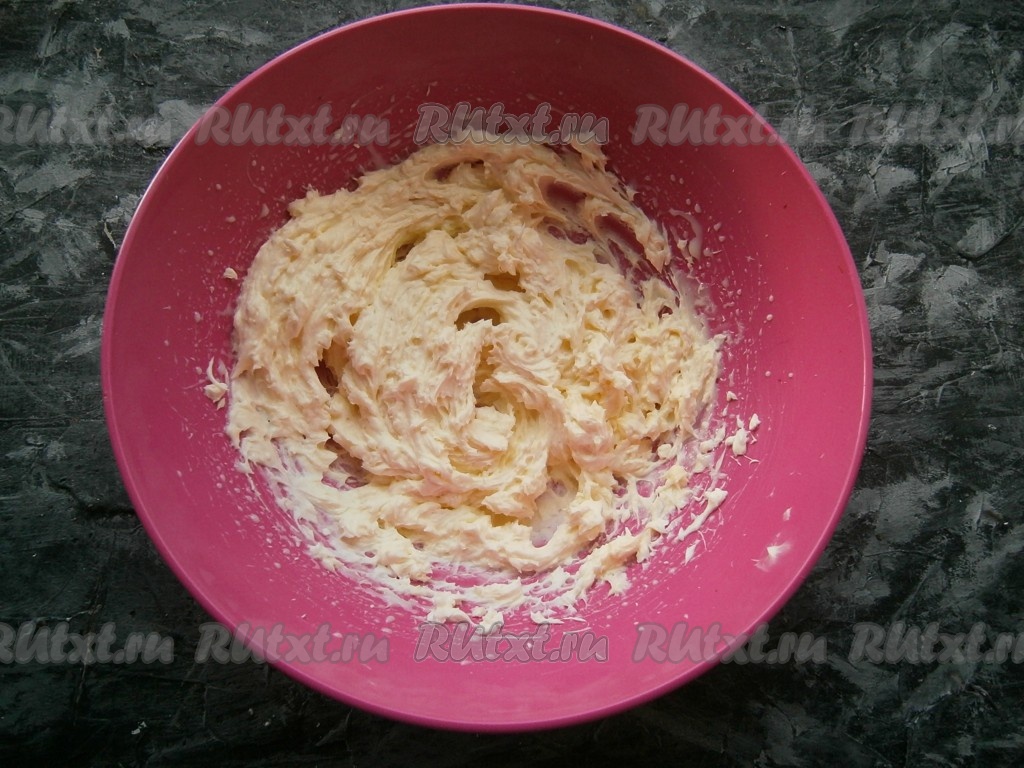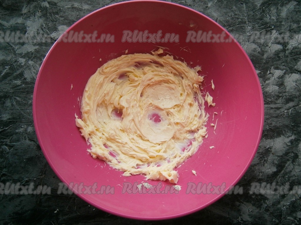 Сливочное масло достать заранее, чтобы оно размягчилось. Затем взбить его миксером в течение 1-2 минут.
