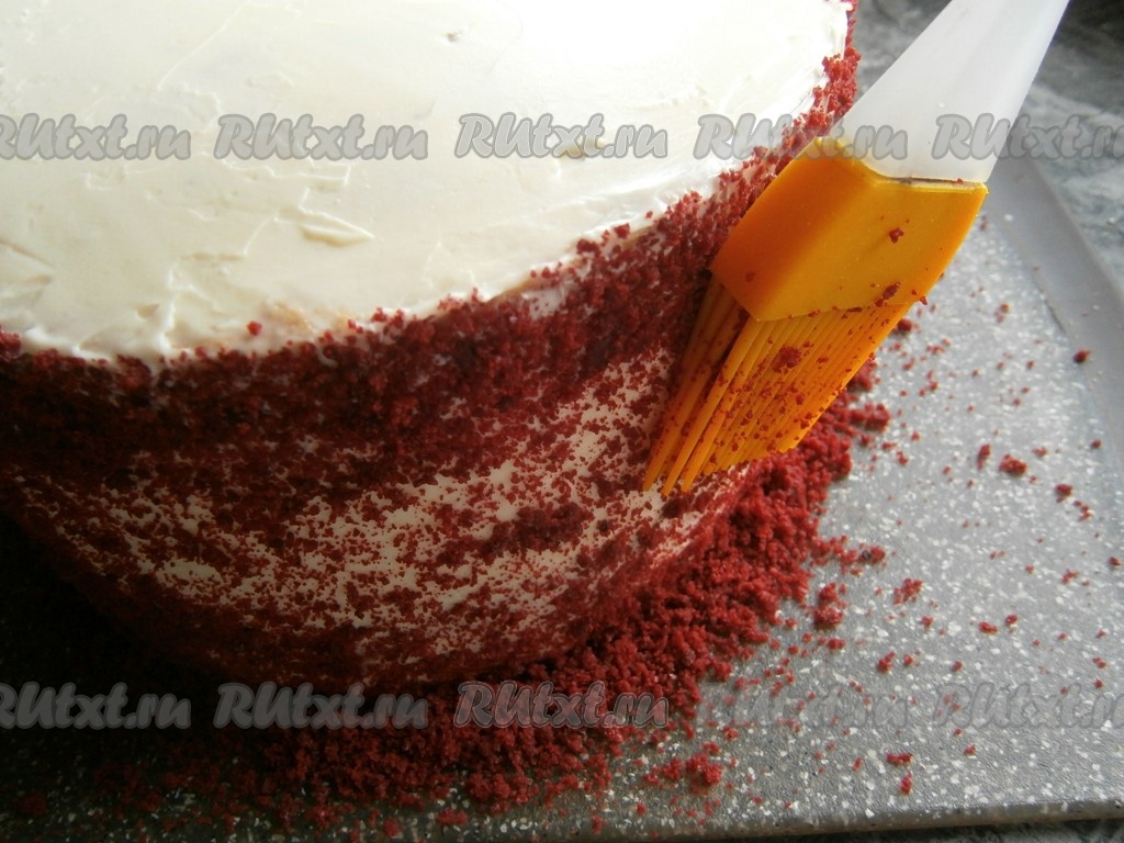 Пока этот слой ганаша не застыл, покрыть бока торта красной крошкой - делать это удобно силиконовой кисточкой.