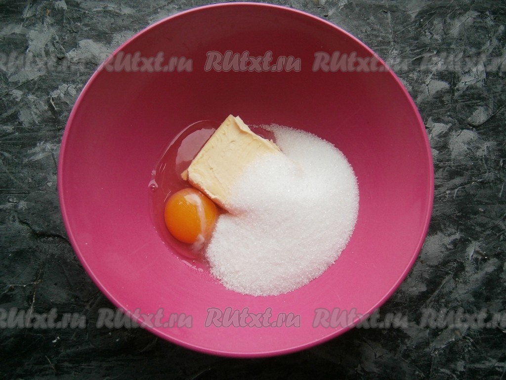 Яйцо с маслом и сахаром взбить миксером в течение 1-2 минут.