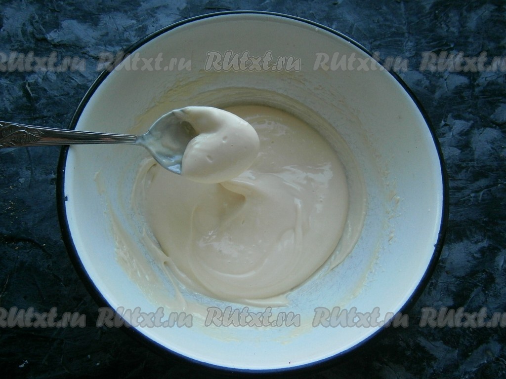 Должно получиться тесто, похожее на крем или достаточно жирную сметану.