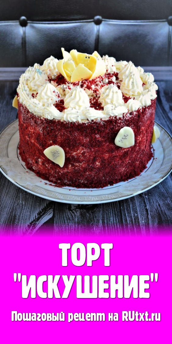 Хочу представить вашему вниманию шикарный торт "Искушение", который несомненно станет украшением любого праздничного стола. На первый взгляд, приготовление кажется сложным, но, поверьте, всё делается не сложнее, чем обычные торты. Этот торт я пекла на семейное торжество и мне хотелось сделать что-то необычное и не похожее ни на что. Я совместила вместе влажный корж из "Красного бархата" и обычный воздушный бисквит, который пропитала вишнёвым сиропом. Прослоила тортик творожно-масляным кремом. Торт получился и по вкусу, и по консистенции потрясающим, понравился он всем без исключения! Рекомендую и вам испечь торт "Искушение" - не пожалеете! Вес торта - около 2 килограмм.