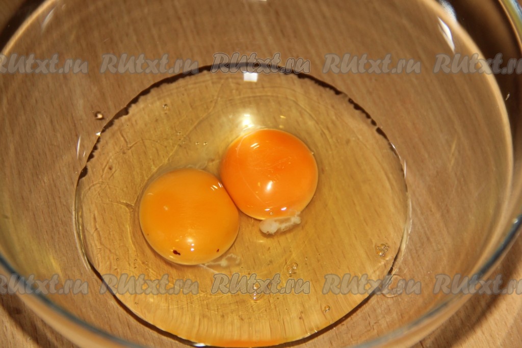 Слегка перемешать яйца венчиком, затем влить молоко, снова перемешать.