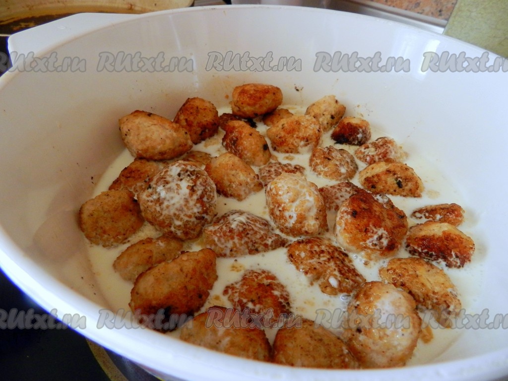 На сковороде, разогретой с растительным маслом, на среднем огне обжарить тефтели с двух сторон до золотистой корочки.