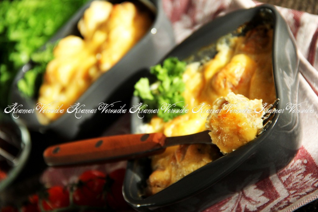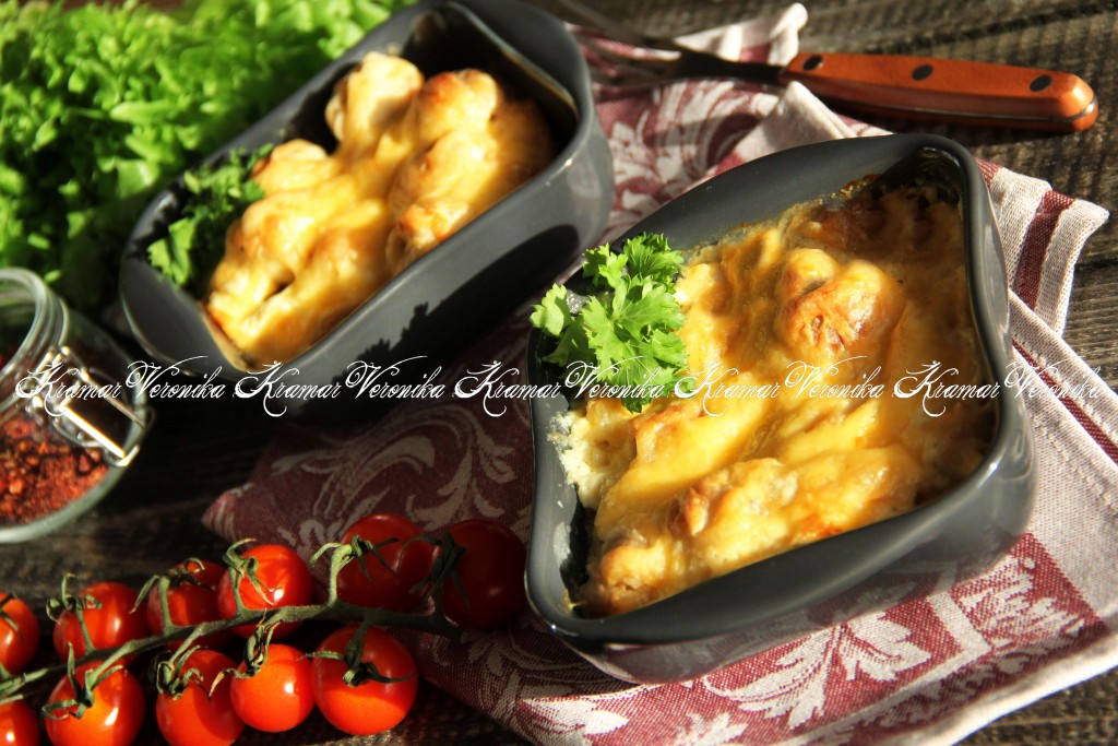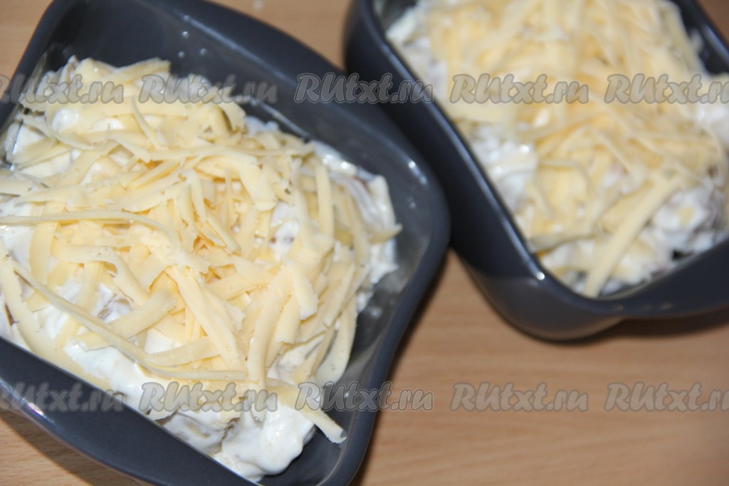 Посыпать верх пельменей оставшимся сыром и поставить в горячую духовку.