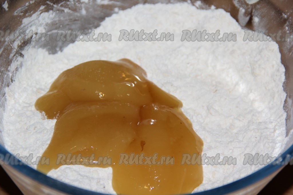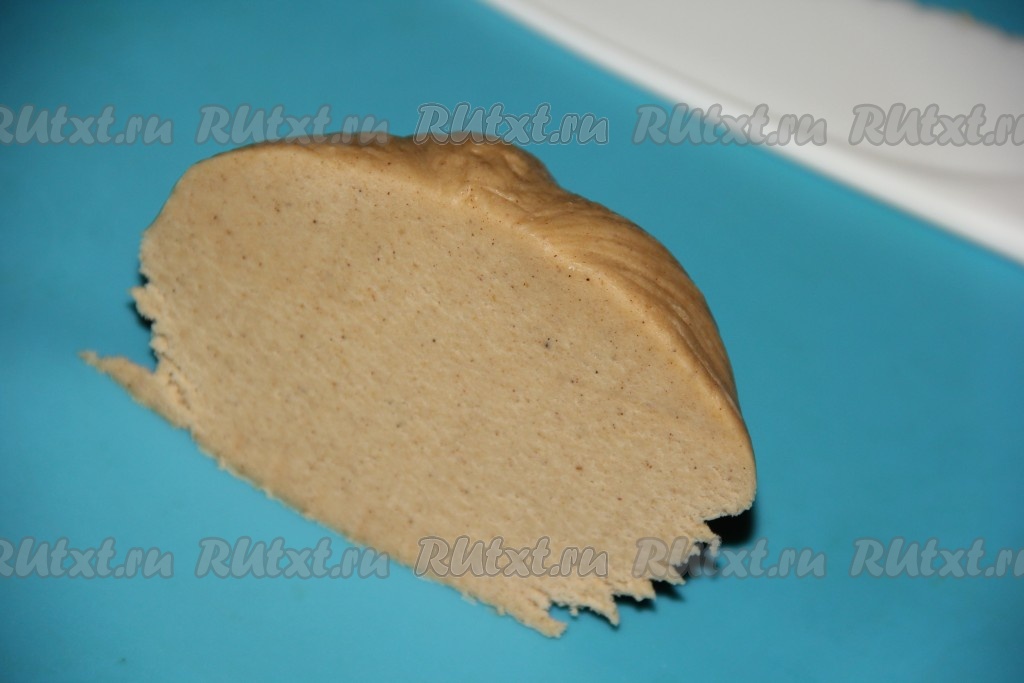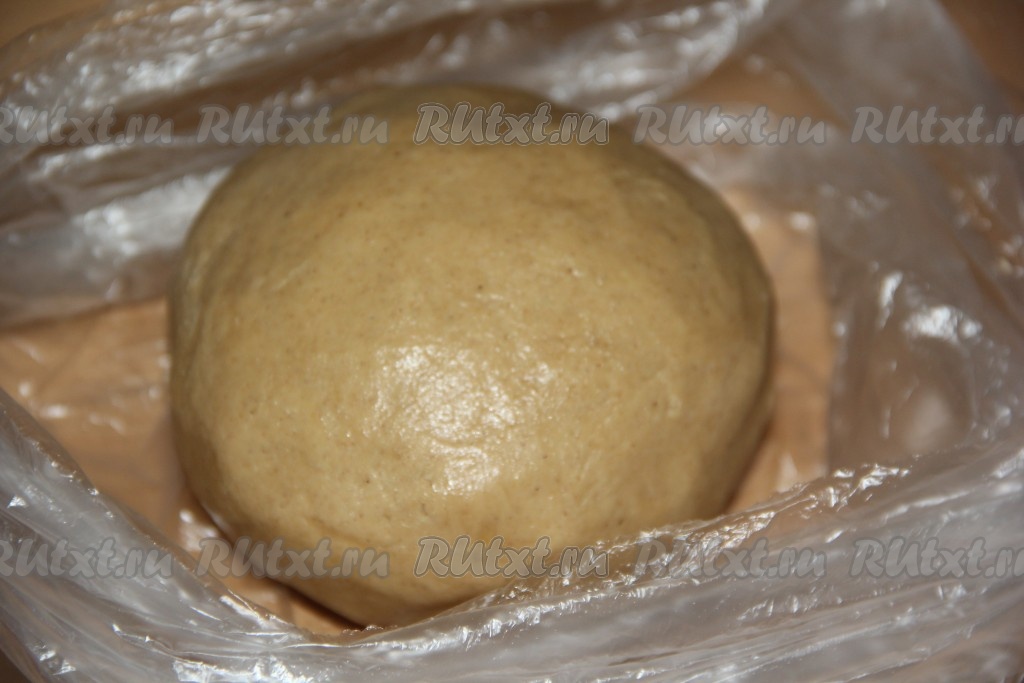 Замесить тесто руками. Сначала оно будет рассыпаться, а затем соберётся в ком. Завернуть тесто в пищевую плёнку и убрать в холодильник на 1-2 суток.