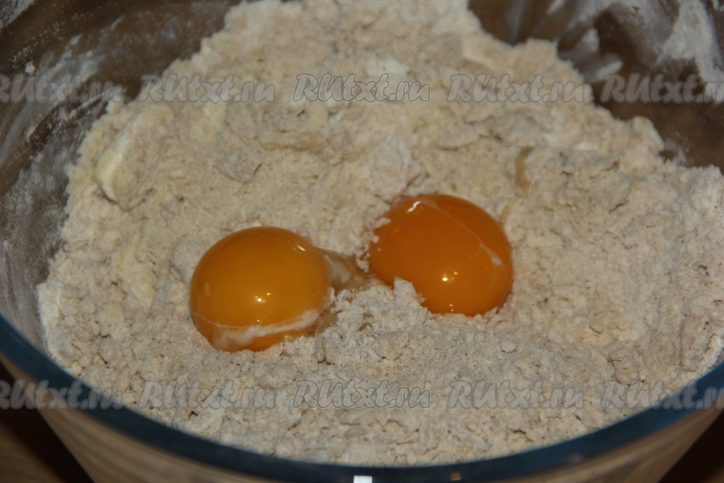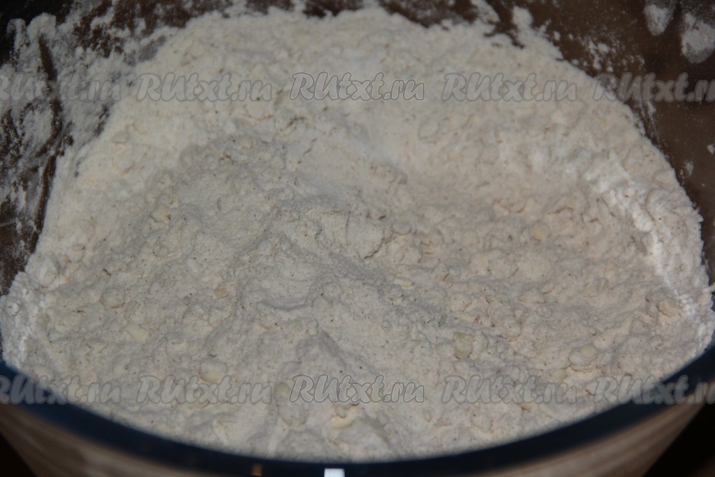 Перетереть масло с сухими ингредиентами в крошку.
