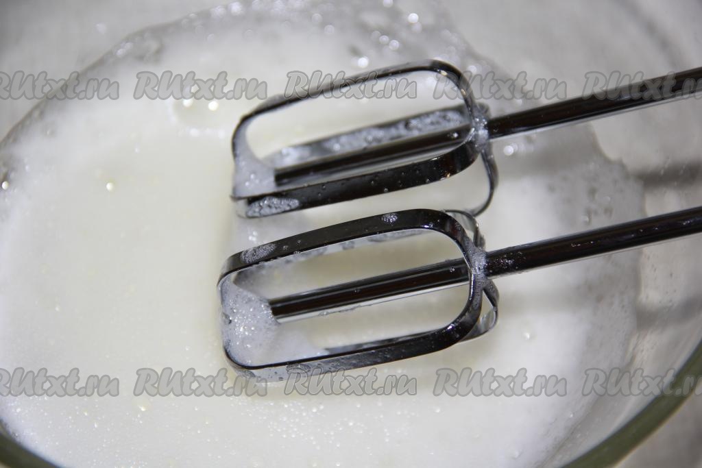 Миксером взбить белки в пышную пену.