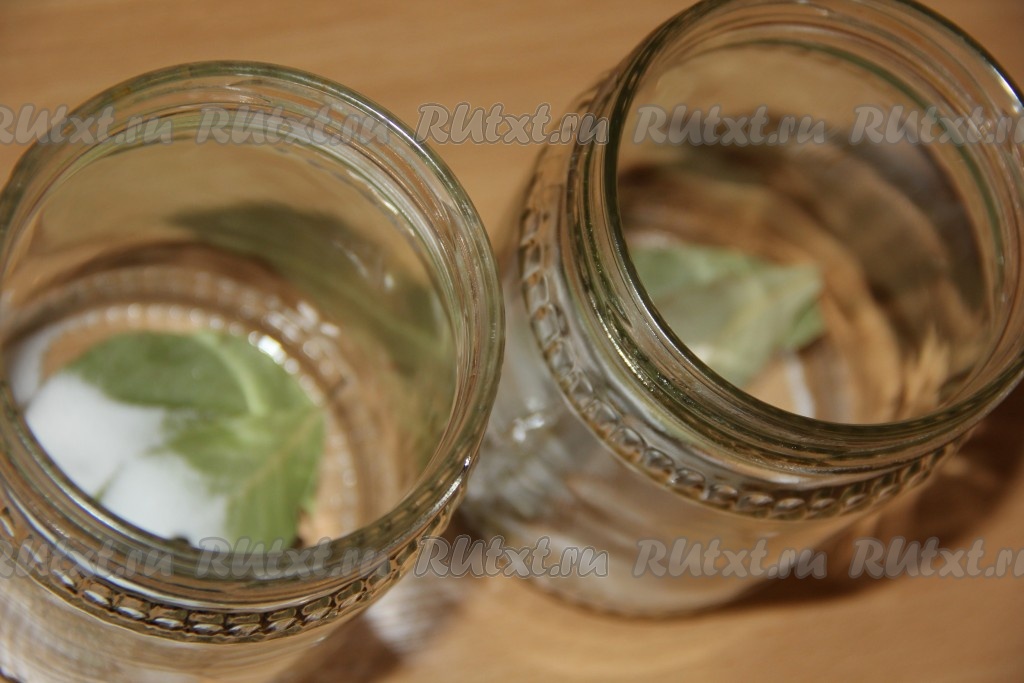В каждую чистую банку выложить 1 лавровый лист, 1 чайную ложку соли и 4 горошины чёрного перца.