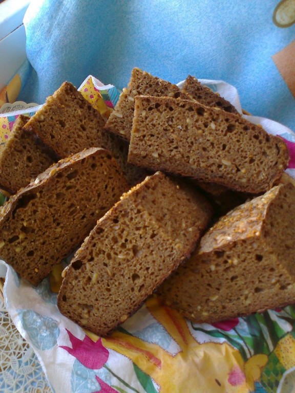 Я пеку 1,5 нормы, так чтобы поместилось в духовку за один раз. Часть хлеба я режу на ломтики и храню в бумажном пакете от муки в морозилке. Вытаскиваю пару ломтиков, например, утром и оставляю размораживаться до вечера - хлеб, как свежий. Надеюсь, вам понравится и приятно удивит рецепт пшенично-ржаного солодового хлеба с семечками на закваске.
