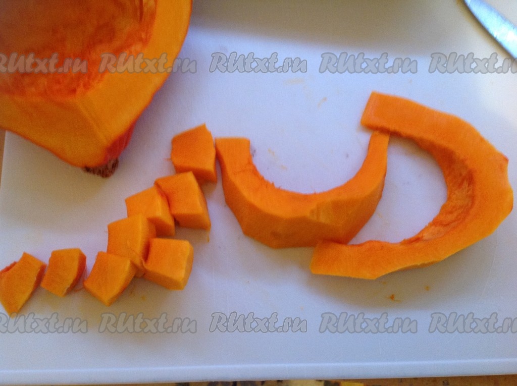 Тыкву очистить от кожуры и нарезать на кубики.