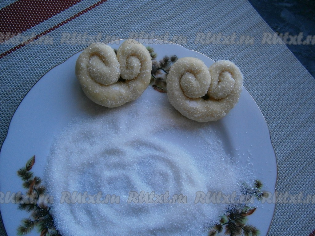 2 столовые ложки сахара смешать с ванильным сахаром, верх плюшек посыпать этой смесью, придавливая сахар.