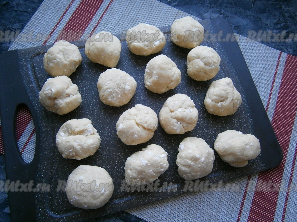 Выложить творожные плюшки на противень, застеленный пергаментом, на достаточном расстоянии друг от друга.