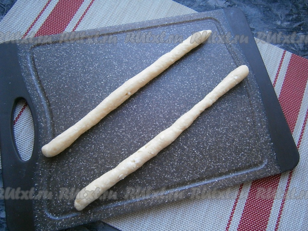 Каждую часть теста скатать в тонкий жгутик длиной около 25 см.