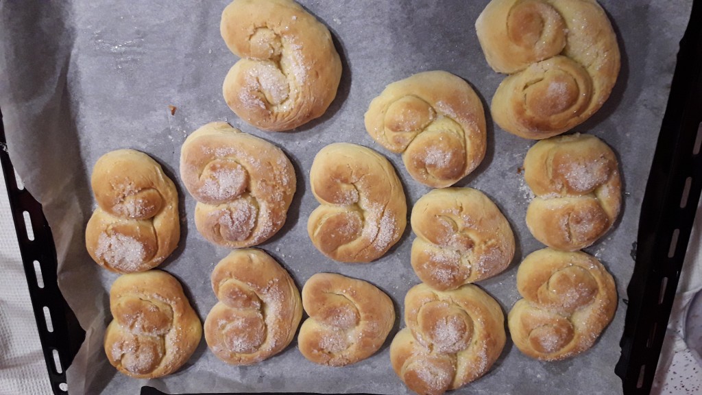 Выпекать плюшки в разогретой до 180-190 градусов духовке 20-30 минут (до лёгкой румяности).