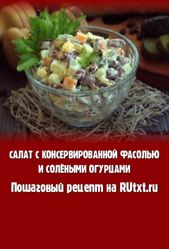 Предлагаю рецепт вкусного, сытного салата с консервированной фасолью и солёными огурцами. Готовила такой салатик уже не раз и всегда он расходился достаточно быстро. Это блюдо может стать прекрасной заменой всеми любимого "Оливье". Всем советую приготовить этот замечательный салат!