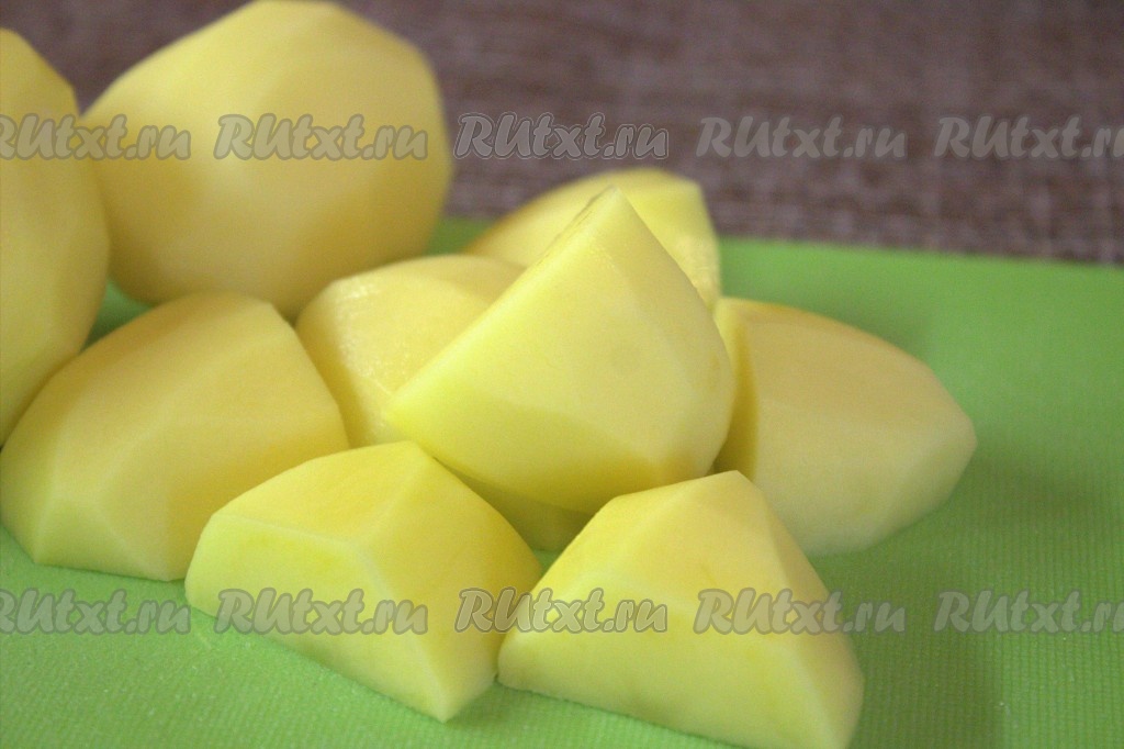 Картофель вымыть, почистить, крупно нарезать (я разрезала каждую картофелину на четыре части).