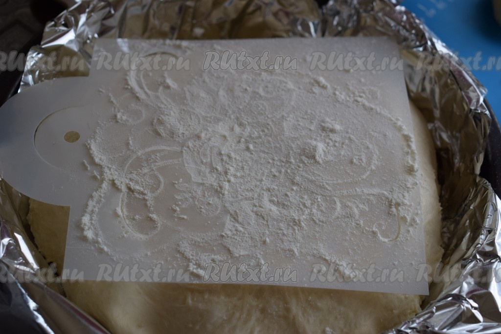 Убрала трафарет, аккуратно отделяя его, чтобы не повредить рисунок. Этот шаг можно пропустить, на вкус хлеба узор никак не влияет.