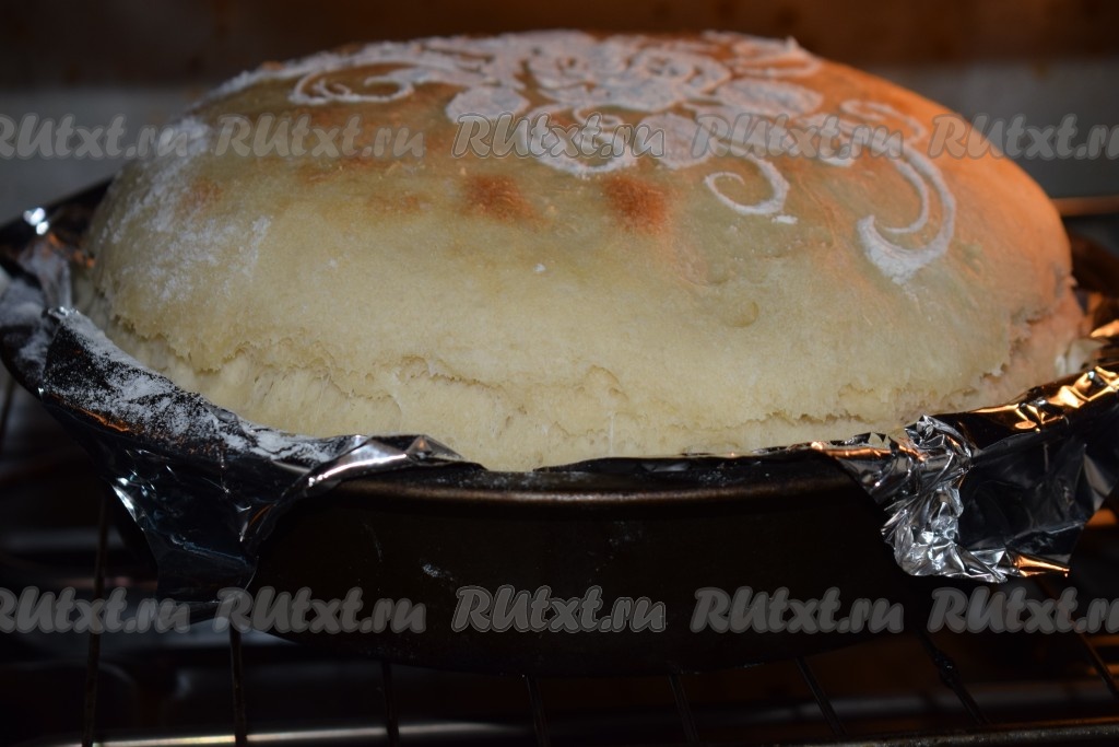 Подошедший хлеб отправляем в разогретую духовку и выпекаем, примерно, 40-45 минут (ориентируйтесь по своей духовке) при температуре 190 градусов.